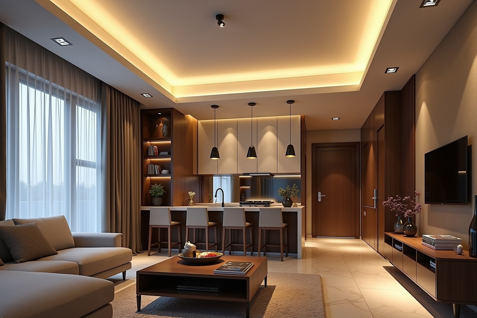 Indirekte Beleuchtung ist ein echter Stimmungszauberer. Sie sorgt für ein angenehmes, blendfreies Licht und taucht den Raum in eine warme, behagliche Atmosphäre. Indirekte Beleuchtung kann in Form von LED-Streifen, Spots oder Wandleuchten realisiert werden und lässt sich hervorragend in Deckenkonstruktionen integrieren. Besonders in Kombination mit Holzpaneelen oder Stuckelementen entfaltet sie ihre volle Wirkung.