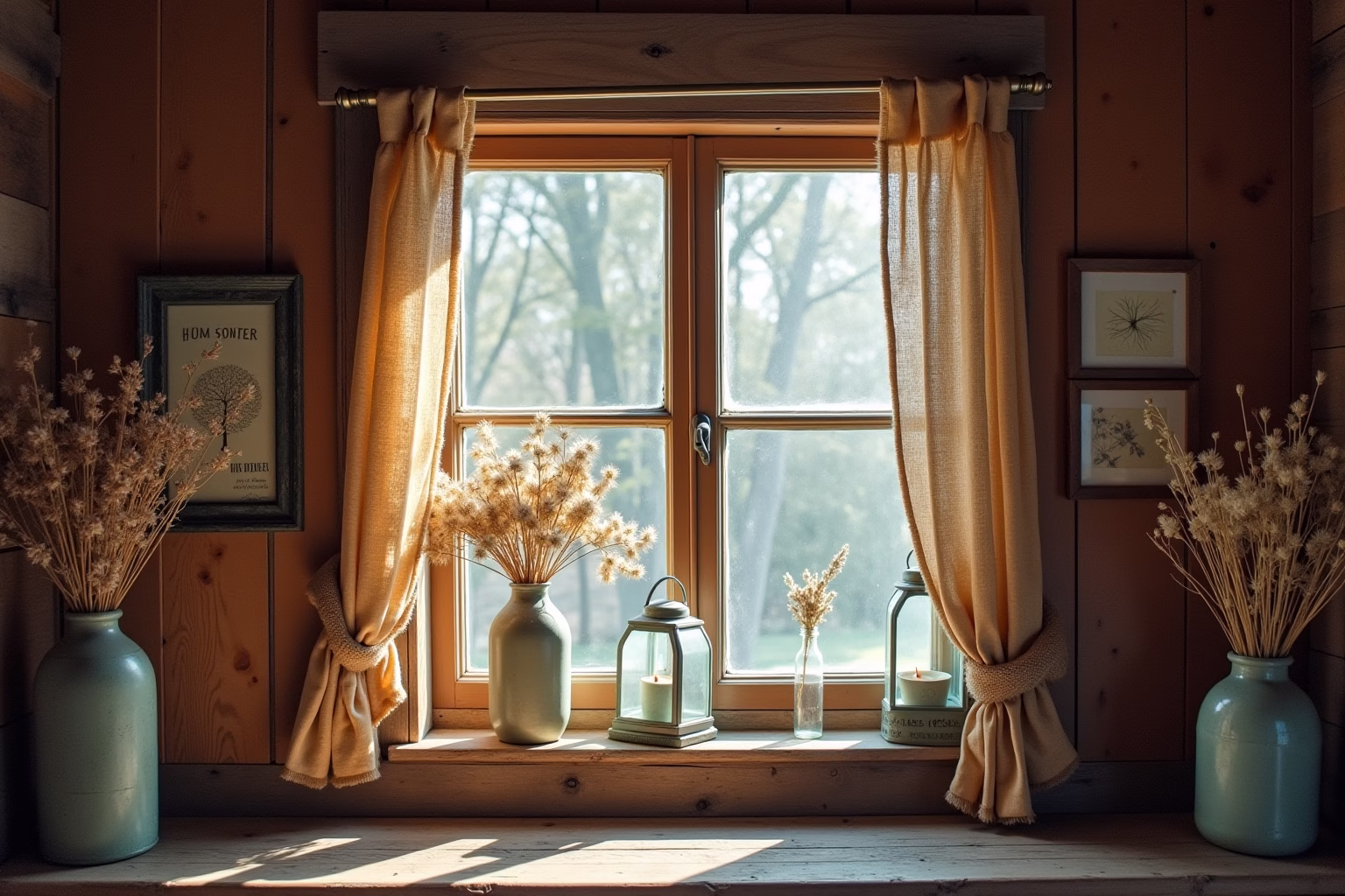 Der Landhausstil zeichnet sich durch natürliche Materialien, warme Farben und rustikale Elemente aus. Alte Fenster passen perfekt zu diesem Stil, besonders wenn sie mit Blumen, Spitze oder karierten Stoffen dekoriert sind.